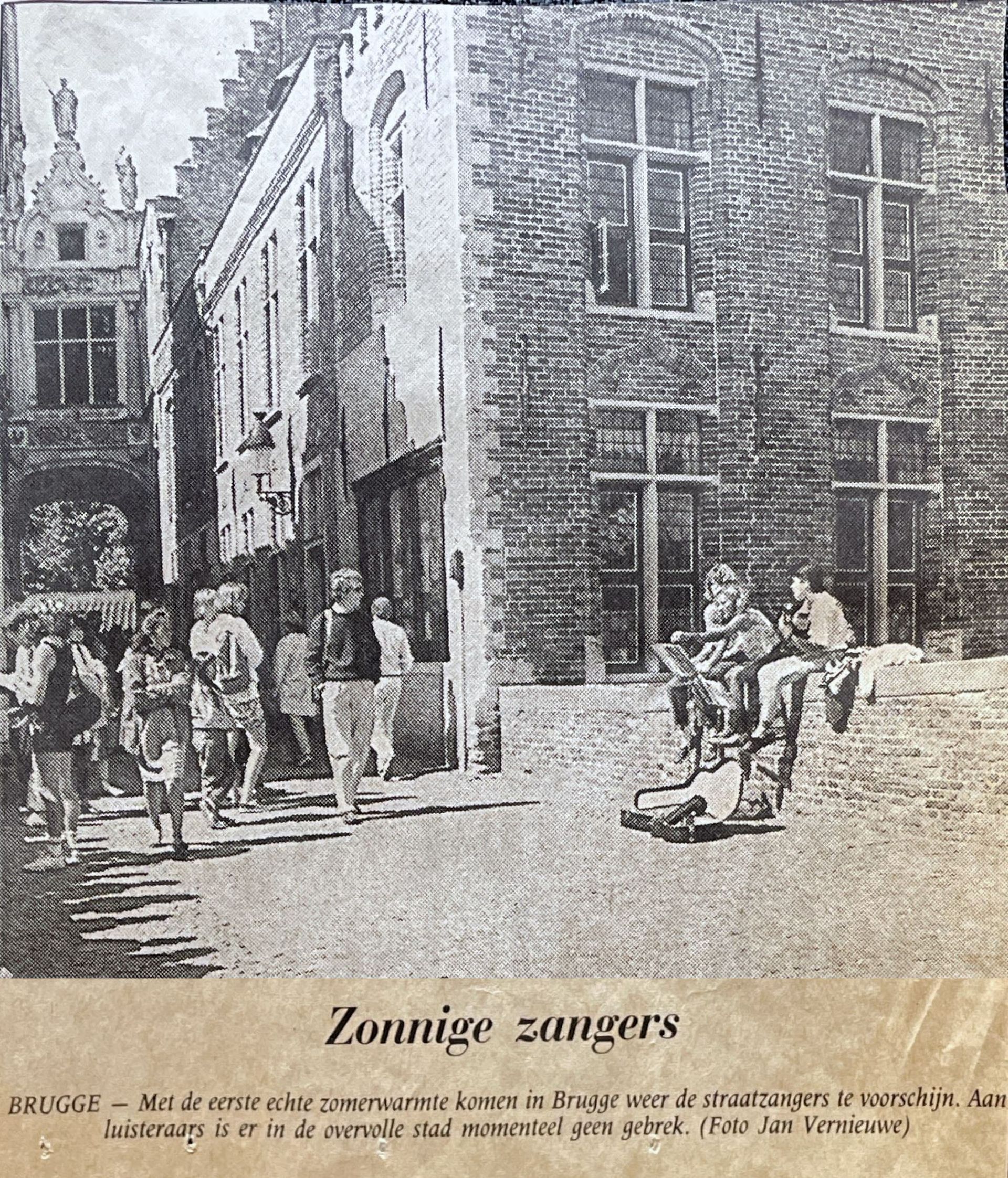 Schon als Kind trat ich als Straßenmusikerin auf; zunächst mit meinem Vater in Süd-Frankreich und später mit dem Trio Itami: wir hatten ein buntes Programm von Werken der Renaissance bis hin zu Balladen und Filmmusik in wechselnder Besetzung für dreistimmigen Gesang, Querflöte und Gitarre. Wir waren damit sehr erfolgreich. Da wir in vielen verschiedenen Sprachen sangen, gab es immer wieder überraschende Begegnungen mit Touristen, die plötzlich anfingen, ein Lied mitzusingen. Unser von der Stadt festgelegter Spielort war die Brücke bei dem Fischmarkt im Zentrum von Brügge. Ich empfinde sie immer noch als 'unsere Brücke'.